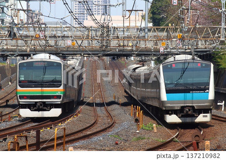 東京都台東区上野駅付近の京浜東北線E233系と上野東京ラインE231系電車