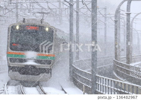[JS]雪の日の湘南新宿ラインE231系電車(高崎線→東海道線直通)