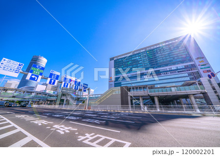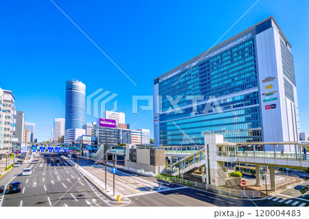 日本の横浜都市景観 新横浜駅前の道路整備も完了…新横浜駅や横浜プリンスHなどを望む。新時代へ=7日