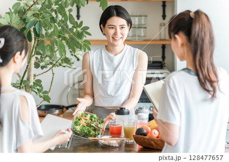料理教室,クッキングスクール,調理教室,料理の勉強をするママ友,女性達(キッチン)