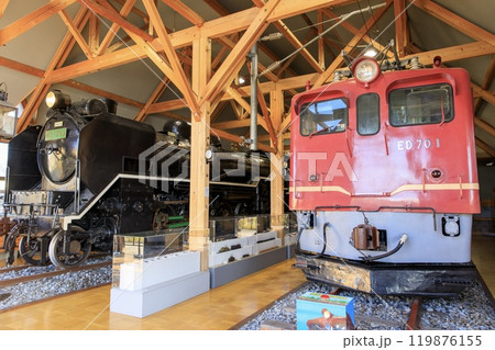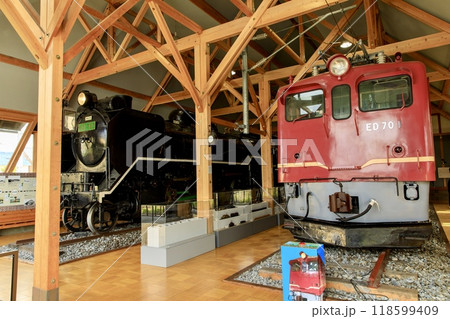 長浜鉄道スクエア 北陸線電化記念館に展示されているD51とED70(滋賀県長浜市)