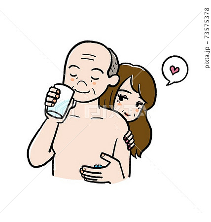 バイアグラを飲むシニア男性のイラスト