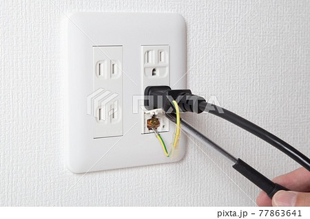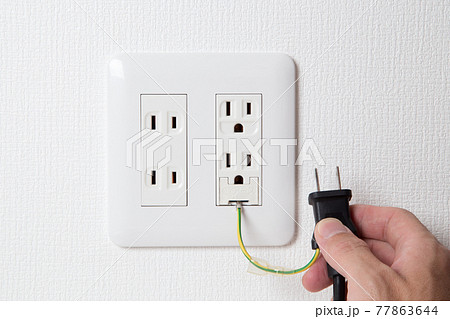 コンセントのアース端子に電源プラグのアース線を接続する作業