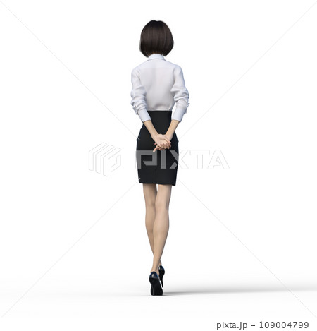 後ろで手を組むビジネスウーマン ユニフォーム perming3DCGイラスト素材