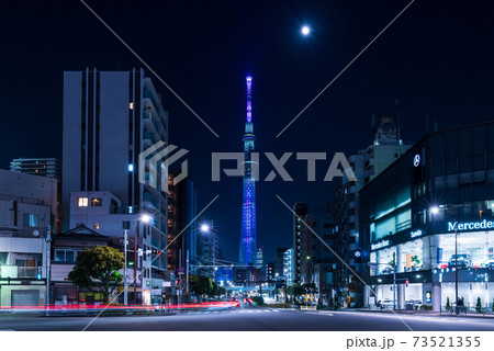 エヴァンゲリオンイメージライティングの東京スカイツリー