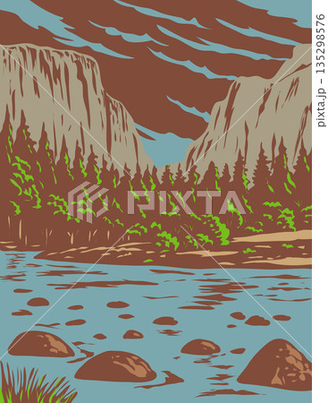 El Capitan or El Cap during fall in Yosemite National Park Sierra Nevada of Central California WPA Poster Art