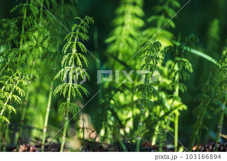 Equisetopsida plant or horsetails in forest. Vascular plants. Nature.