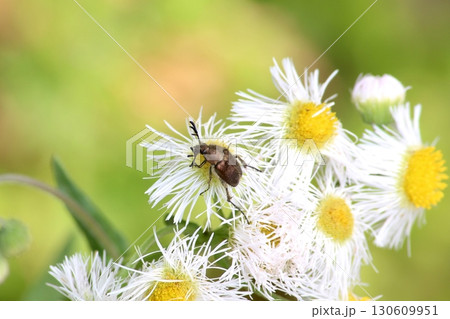 ヒメジョオンに来たヒゲブトハナムグリ