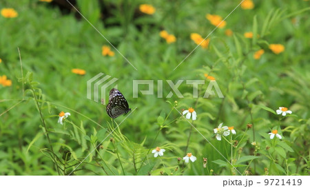 生き物 昆虫 センダングサの原っぱを飛ぶツマムラサキマダラ