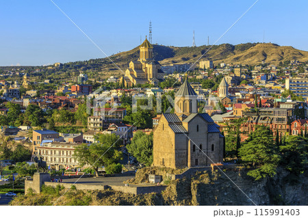 メテヒ教会と至聖三者大聖堂とトビリシ街並み