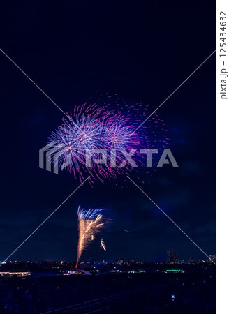 東京都北区赤羽から 夕暮れの荒川の眺め
