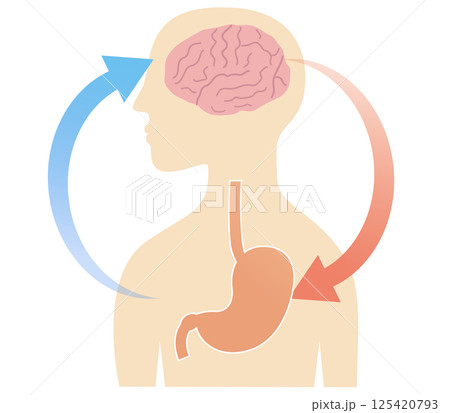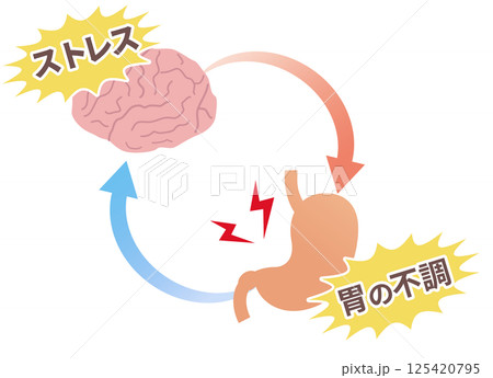 ストレスで胃が痛くなる仕組み、胃脳相関と機能性ディスペプシアの概念図。
