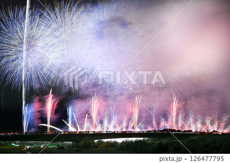 約三万発の花火が夜空を彩る利根川花火大会、四大花火師の競演の日本一美しい花火、芸術花火、アート