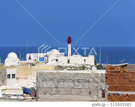 チュニジア・マーディア 岬の灯台と青い海 / Mahdia, Tunisia