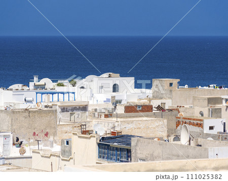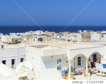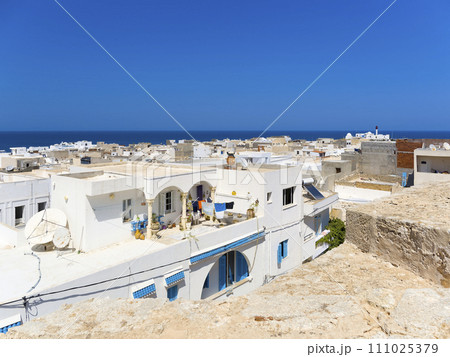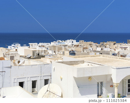 チュニジア・マーディア 白壁の住宅と青い海 / Mahdia, Tunisia