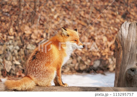 北海道の冬を迎えるモフモフの可愛いキタキツネ