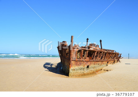 世界最大の砂の島、フレーザー島(世界遺産)の75マイルビーチに横たわる難破船、マヘノ号