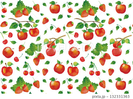 水彩風 かわいい果物(サクランボ・イチゴ・リンゴ)のパターン