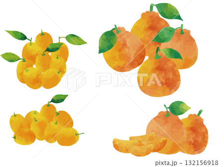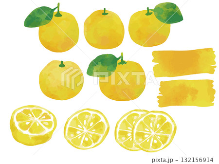 水彩風 柚子のイラストセット1(葉っぱ付きあり)