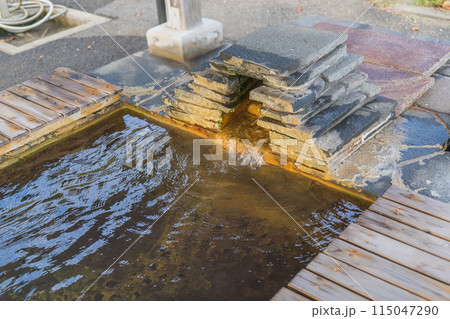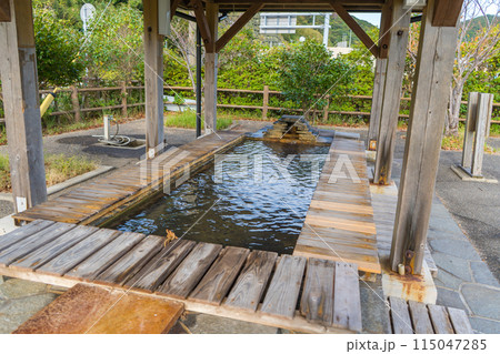 長崎県の新上五島町の奈良尾港前の足湯の風景