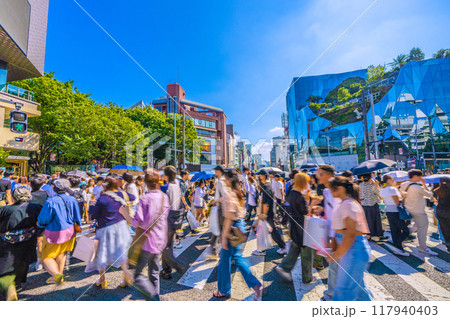 日本の東京都市景観 神宮前の交差点や東急プラザ原宿「ハラカド」などを望む