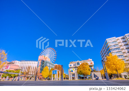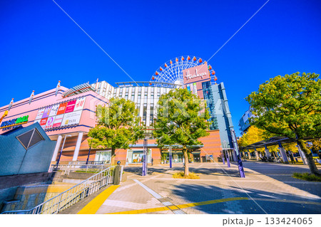日本の横浜都市景観11月22日。センター北駅前、都築阪急の観覧車などを望む