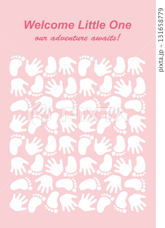 Baby shower guest book poster template for girls with babies footprints and handprints on pink background with guest signature places