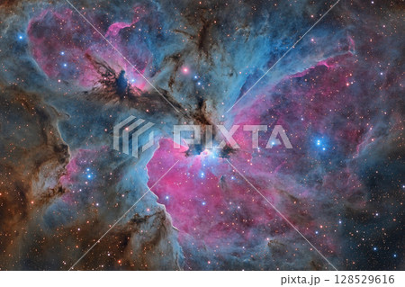 Colorful nebula and distant galaxies in deep space, cosmic clouds of gas and stars. Elements of this image furnished by NASA
