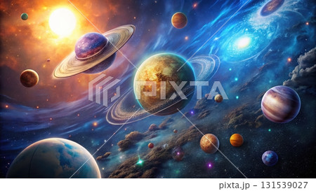Stunning cosmic view of planets and stars in a vast sky representing a wealthy universe