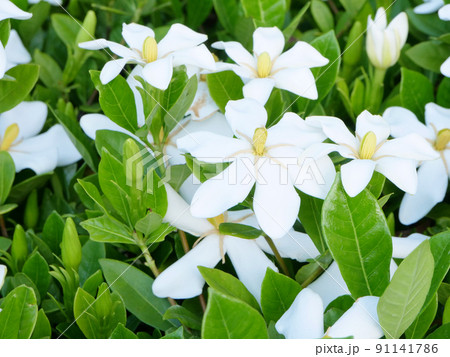 ジャスミンの香り漂うクチナシの花のクローズアップ