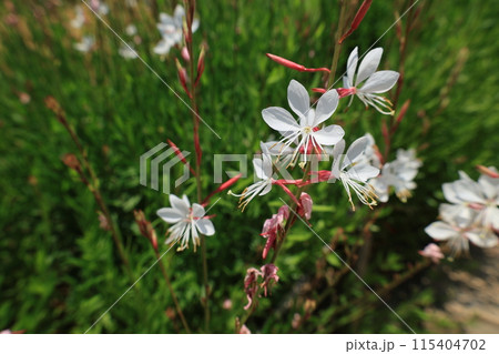 春の公園に咲くガウラ(ハクチョウソウ)の白い花