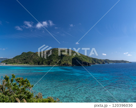 沖縄県 慶良間諸島の阿嘉島にある天城展望台から見た慶留間島