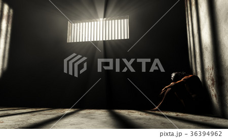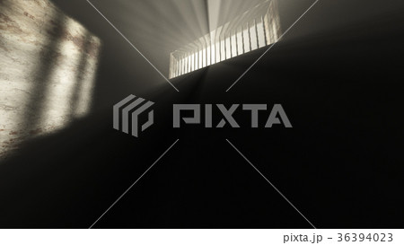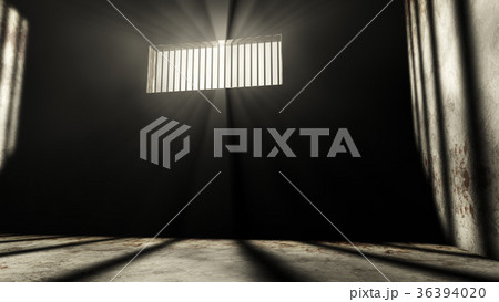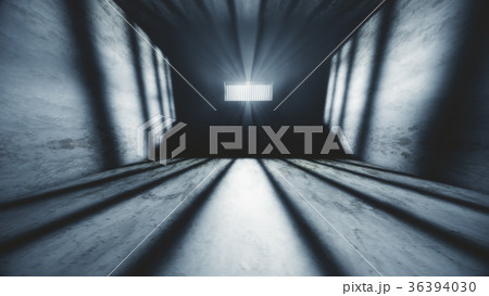 Interior of prison room inside with shine rays, computer generated. 3d rendering grunge background.