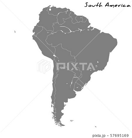Vector map silhouette of South America, showcasing its distinct shape and geographical layout. Ideal for educational and design purpose, graphic emphasizes the continent borders without any details.