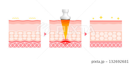 HIFU(ハイフ)の仕組みと効果 皮膚断面図イラスト / 美容・ダイエット