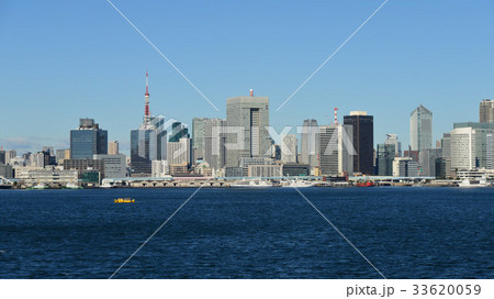 日本の東京都市景観 日の出桟橋から御座船や台場方向を望む