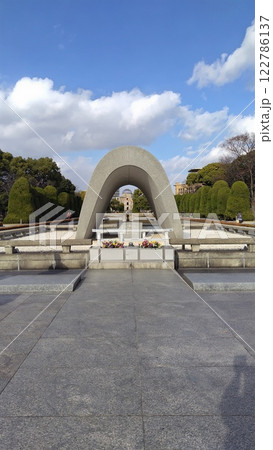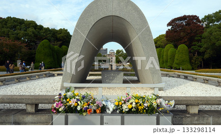 日本 広島県広島市 平和記念公園 広島平和都市記念碑 平和の灯 原爆ドーム 写真