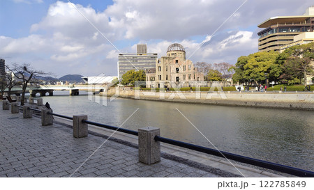 日本 広島県広島市 平和記念公園 相生橋から眺める原爆ドーム 写真