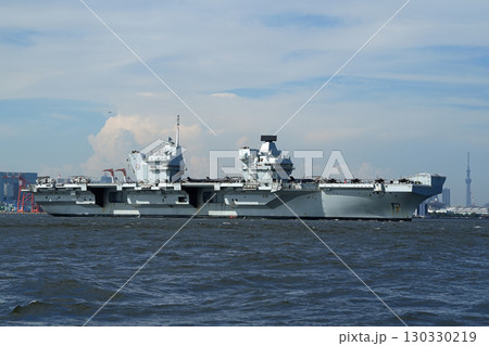 東京湾に入る英国海軍空母「プリンス・オブ・ウェールズ」。2025/8/28