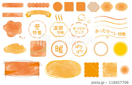 水彩の冬の暖かフレーム見出しあしらいセット リボン・ライン