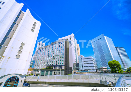 日本の横浜都市景観 桜木町駅前複合ビル・JR東日本ホテルメッツ横浜桜木町などを望む
