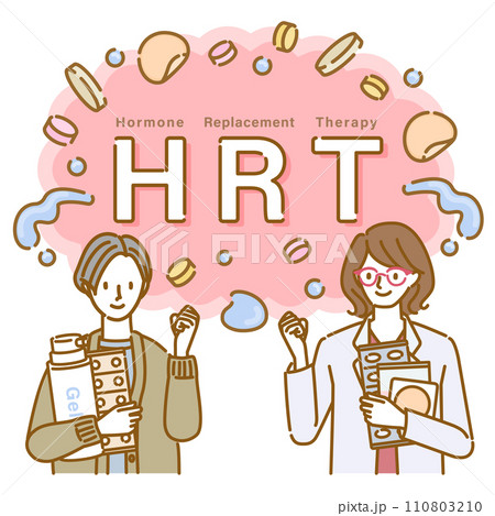 Vector Illustration of HRT or Hormone Replacement Therapy Acronym Featuring Hormone Medication and Medical Treatment in a Healthcare Background