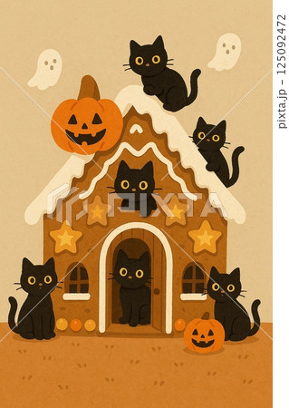 ハロウィン くろねこたちと可愛い家 Generative AI