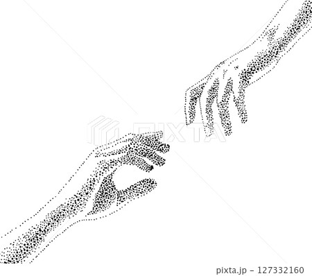 Hands reach out to each other. Monochrome concept for Valentine's Day. Black line isolated on white background. Stock vector illustration. hand drawn. Not AI, Vector illustration