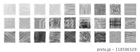 Line crosshatch patterns range from simple to complex, offering a variety of textures and artistic styles. Vector set of monochrome hand drawn abstract backgrounds. Cross hatch pencil doodle shading