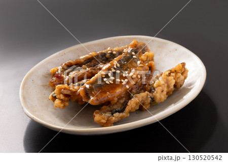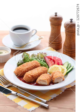 メンチカツ(ミンチカツ)に特製ソースをかけて