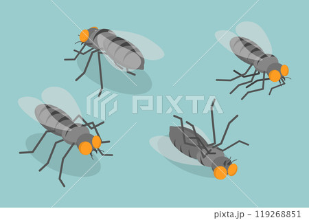3D Isometric Flat Vector Set of Houseflies, The Pesky Insects Flying Inside. Item 2