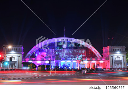 バンコクイルミネーションフェスティバル2024期間中のタイ王国バンコクのフアランポーン駅