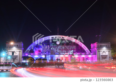 タイ国有鉄道バンコク中央駅、フワランポーン駅の夜景、ライトアップ