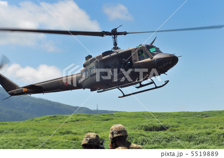 東日本大震災の災害救助等でも活躍する陸上自衛隊のUH-1Jイロコイス多用途ヘリコプターの飛行